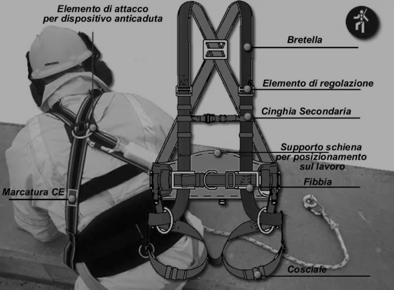 L’imbracatura anticaduta per il corpo deve essere impiegata in ogni situazione ove sia presente il rischio di caduta dall’alto, sia libera, sia libera limitata, sia contenuta e la sua scelte deve tenere conto di quanto segue: