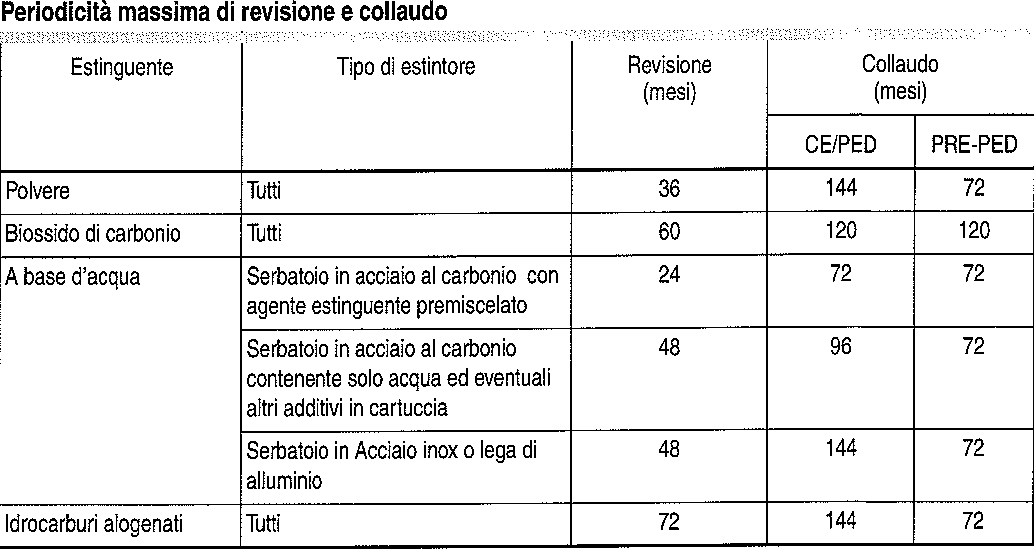 Perciò anche l’attività di collaudo deve essere effettuata con tempistiche diverse in base al tipo di estinguente presente all’interno.